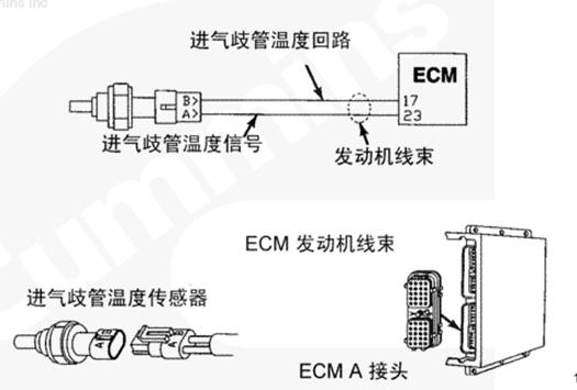 正時執行器電路圖開路,或者電源觸針對地短路,或者回路觸針對 CM500 ECM A 接頭上的蓄電池電壓短路。這不是 CENSE™ 系統 ECM。 |