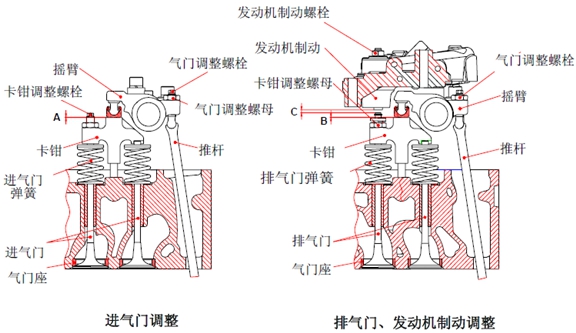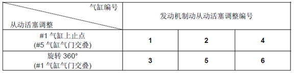 * 當調整發動機制動從動活塞時,只調整相應氣缸編號的排氣門。