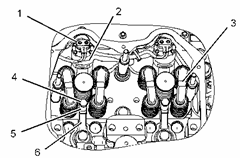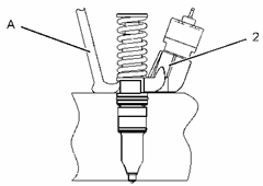 在電子單體噴油器 (2) 上作識別標記以便于安裝。必須把每個電子控制單體噴油器安裝回缸蓋中的原來位置。