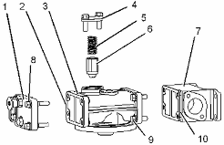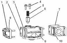 拆卸螺栓 (9) 。從發(fā)動(dòng)機(jī)機(jī)油濾清器底座 (3) 上卸下接頭 (7) 和密封墊 (10) 。
