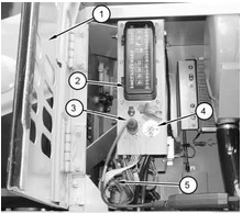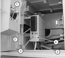 卡特彼勒365C和385C挖掘機機器 ECM (5) 位于駕駛室(前檢修門) (1) 后面的腔室內。