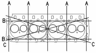 檢查缸蓋底面有無點蝕、腐蝕和裂紋。檢查閥座鑲圈及噴油器噴嘴孔周圍的區域。