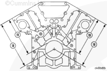 兩個(gè)康明斯發(fā)動(dòng)機(jī)排的缸體高度之差不能超過(guò) 0.13 mm [0.005 in]。