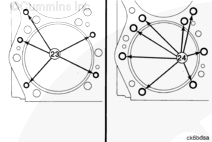 在 1993 年 11 月,從康明斯發(fā)動(dòng)機(jī)生產(chǎn)序號(hào) 33124631 開(kāi)始,K38 和 K50 康明斯發(fā)動(dòng)機(jī)缸體就在兩個(gè)位置進(jìn)行了額外的機(jī)加工 [除了在 1992 年 1 月開(kāi)始實(shí)施的 K2000E 和 K1800E 外] 以降低機(jī)油阻力。