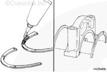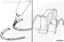 每道密封膠寬度必須在 3 至 5 mm [0.12 至 0.20 in] 之間,并且不得進入到主軸瓦內徑中。主軸承中的密封膠可能損壞發動機。 |