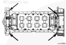 將油底殼安裝到氣缸體上。在油底殼每一側(cè)與前后部距離相等的位置,分別擰緊 1 條 13 mm 的油底殼安裝螺釘。