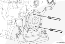 按圖示在齒輪室蓋上安裝一個千分表,測量減振器的偏心度(不圓度)。