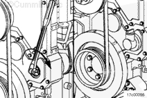 早期發動機減振器標記有制動器設定 1-6、制動器設定 2-5 或制動器設定 3-4。必須在這些發動機上的正確標記處調整發動機制動器。更新的發動機減振器只標記有 AB 或 C,和同一氣缸上的氣門和噴油器一起調整。