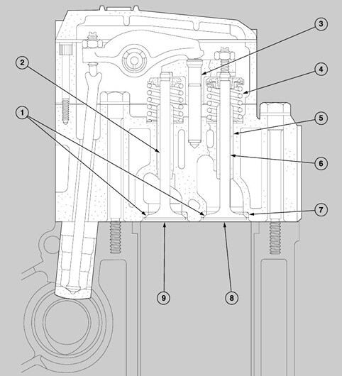 Inlet valve stem diameter (A2). . . . . . . . . . . . . . . . . . . . . . . . . . . . . . 9,489 to 9,507 mm (0.3736 to 0.3743 in)