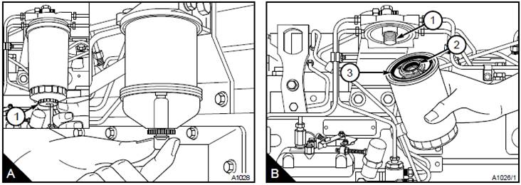 注意:工廠裝配的一些濾罐的螺紋接頭涂抹有特殊密封膠。維修時(shí)提供的濾罐代之以內(nèi)部密封組件(B2)。密封膠由膠夾固定在合適的位置上。如果未正確裝配濾罐密封,則可能會(huì)導(dǎo)致燃油噴油泵損壞。