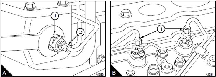 4松開Perkins1000/4/6缸噴油器(B1)的兩個高壓接頭。