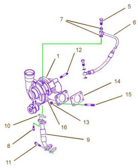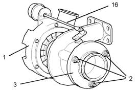 注:不要使用廢氣旁通閥的執(zhí)行器桿(16)來抬起渦輪增壓器(1)。