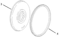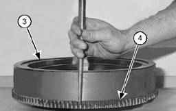 3.等齒圈冷卻后,清潔飛輪(3)和齒圈(4)。