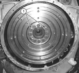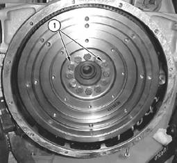 3.拆下其余將飛輪(3)固定到曲軸上的調(diào)整螺釘(1),再拆下飛輪。