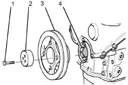 2.從曲軸(4)上拆下皮帶輪(3)。