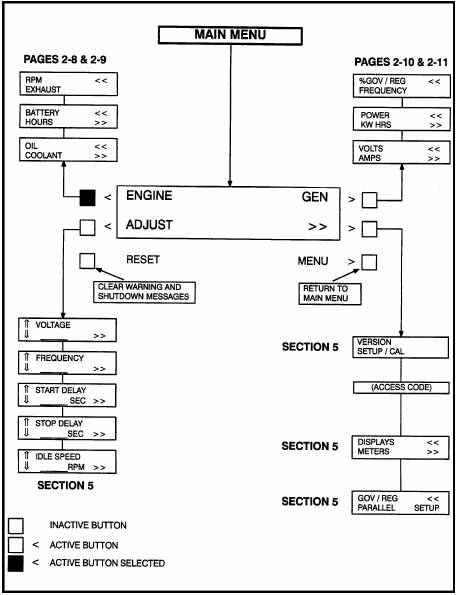 康明斯柴油發電機組PCC3100發電機組主功能(MAINMENU)