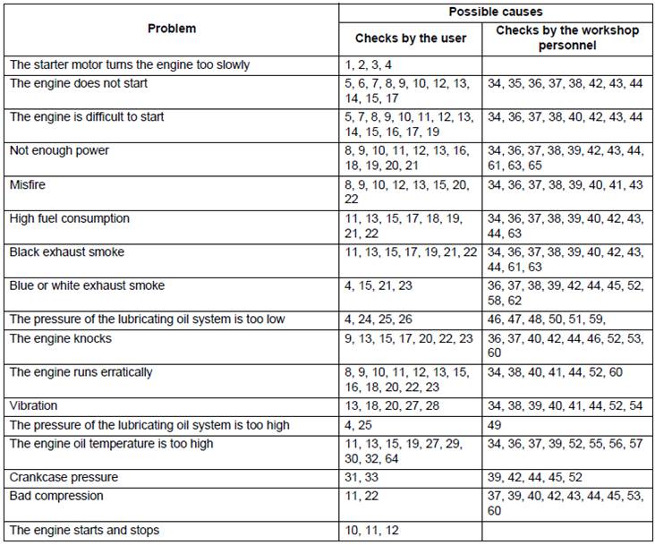 Problems and possible causes