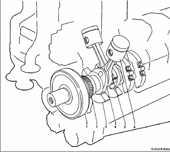 描述:曲軸將活塞的直線往復運動轉化為回轉運動,它為整體鍛造,支撐軸頸為感應淬火后磨光。曲軸靠安裝在曲軸箱上的滑動軸承支撐,并在驅動端設置了四點推力軸承以平衡軸向力。質量平衡是通過用螺栓固定在曲軸上的平衡塊來實現的,潤滑油通過主潤滑油道潤滑曲軸。在曲軸驅動端布置有連接法蘭用以傳遞功率。曲軸減震器和用以驅動齒輪系的齒圈安裝在曲軸的自由端。