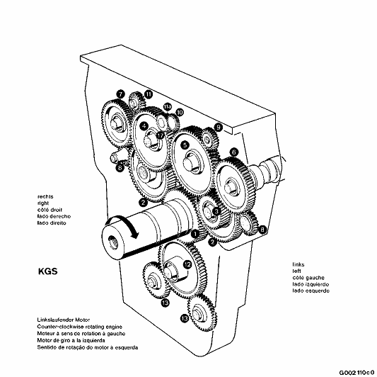 7、凸輪軸驅動齒輪 8、主機冷卻水泵驅動齒輪 9、供油泵驅動齒輪