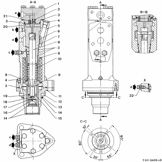 描述:分體式缸頭被螺栓緊固在曲軸箱上,曲軸箱與缸頭間由銅墊片進行密封, 油路和冷卻水路又由橡膠密封圈進行密封,缸頭上表面由缸蓋進行密封,每個缸頭上有兩個進氣閥和兩個排氣閥分布在噴油器的周圍,進氣閥和排氣閥安裝在下彈簧座上,噴油器安裝在氣閥中間的孔內,與缸頭油道間用密封環進行密封。每個缸頭都有一個減壓閥,每一側活塞組布置一個啟動空氣分配器。