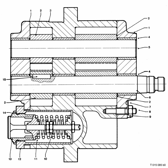 描述:調速器通過調整柱塞副的位置決定著噴油泵的噴油量,連接機構4安裝在齒輪箱上,油門控制桿12固定在曲軸箱外側,位置在凸輪軸的上方,用以傳遞油門控制桿運動的傳動桿3被設計成類似安全控制桿10的結構。如果作用在傳動桿3上的偏轉力矩超過3.5Nm, 積分彈簧被壓縮, 引起安全控制桿10動作,切斷調速器傳動機構與噴油泵的聯系。利用彈簧的反彈力(1.6Nm)將傳動桿恢復其初始位置,油門回復裝置通過連接機構4作用在機身兩側的調節桿上,從而使噴油量為零。