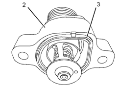 4如果安裝原來的水溫調節(jié)器,將一個新O形密封圈(3)安置到水溫調節(jié)器殼體(2)的凹槽中。提供的新水溫調節(jié)器殼體配有一個新O形密封圈。