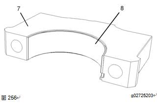 9將主軸瓦下軸瓦(8)安裝到主軸瓦蓋(7)中。確保主軸瓦下軸瓦的定位凸舌正確座入軸瓦蓋的槽中。