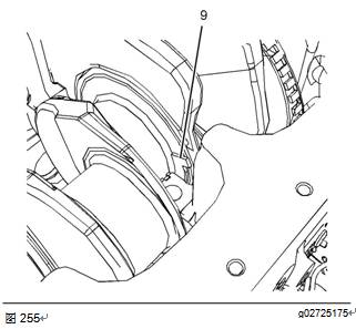 8使用清潔的發動機機油潤滑止推墊圈(9)。將止推墊圈(9)安裝到缸體的6號主軸瓦中。