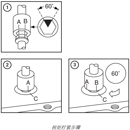 1. 在套筒扳手上相隔 1/6 圈 (60° ± 10°) 劃兩個(gè)標(biāo)記(A和 B)。