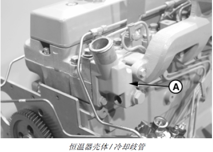 注意: 一些John Deere約翰迪爾強鹿柴油發動機的恒溫器/ 冷卻歧管與缸蓋是一體的。