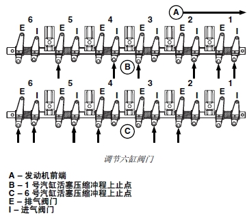 4. 調(diào)整 2 號、4 號和 6 號汽缸排氣閥門間隙和 3 號、5號和 6 號汽缸進氣閥門間隙。