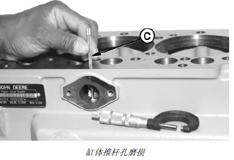 4. 測量缸體推桿孔內徑 (C)。