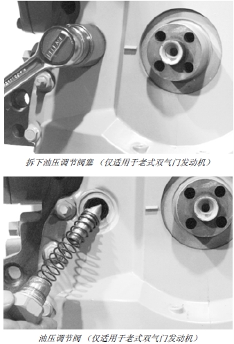 14. 對于雙氣門John Deere約翰迪爾強鹿柴油發動機:必要時,拆下油壓調節閥塞。拆下彈簧和閥門。(參見第 060 章“拆卸和安裝油壓調節閥”部分。)
