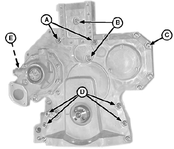 注意: 為便于組裝,拆卸前請標記并確定正時齒輪蓋緊固件的位置。