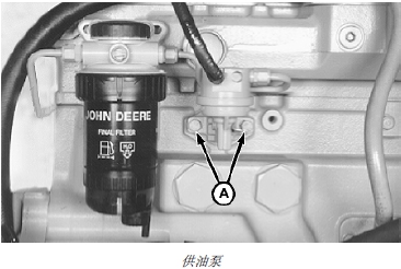 6. 對于配備凸輪軸驅動供油泵的John Deere約翰迪爾強鹿柴油發動機,參見 CTM217(機械燃油系統)第 02 部分第 090 章“拆卸供油泵”、CTM341 (配 Stanadyne DE10 泵的 12 級電子燃油系統)第 02 部分第 090 章“拆卸供油泵”或CTM230 (配 Denso 高壓共軌的 11 級電子燃油系統)第 02 部分第 090 章“拆卸機械輸油泵”。