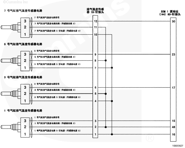 7 號(hào)氣缸排氣溫度傳感器電路 - QSK50 及 QSK60 工業(yè)用發(fā)動(dòng)機(jī)