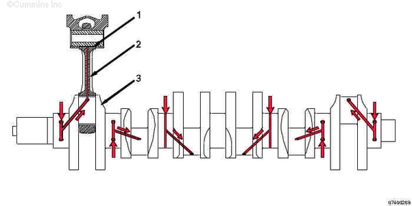 1. 活塞銷襯套 2. 連桿 3. 曲軸。