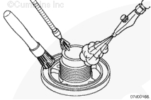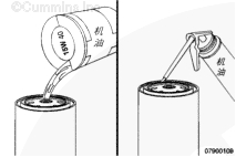 在工作溫度時(使用 15W-40 機油),如果壓降大于 172 kPa [25 psi],則表示濾清器堵塞。 識別濾清器堵塞的原因。核實滿足康明斯公司維護保養(yǎng)指南。 采用下述步驟檢查有無可能的油液污染。參考第 7 節(jié)中的步驟 007-083。 如果濾清器堵塞,更換機油和機油濾清器。 有關(guān)機油濾清器堵塞的更詳細(xì)資料,參見下述公告。參考《Cummins® 發(fā)動機機油和機油分析建議》(公告號 3810340)。 | |||||||||||||||||||||||||||||||||||||||||||