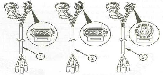 大部分壓力傳感器無法通過測量電阻的方式來判斷好壞,而是需要在壓力傳感器工作時通過輸出的信號電壓來判斷。因此在檢測壓力傳感器時需要專用的檢測導線,保證傳感器正常工作的同時將三條線引出供檢測,不同的壓力傳感器需要不同的檢測導線。下圖為不同的壓力傳感器測試插頭。