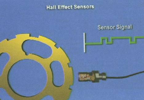 霍爾效應式速度傳感器內部有一特殊半導體,在金屬物體接近此半導體時電阻會發生變化,通過傳感器內部的電路輸出信號電壓。和磁場繞組式速度傳感器輸出的模擬信號相比,霍爾式速度傳感器輸出的是更精確的數字信號,因此越來越多的機型開始采用霍爾效應式的速度傳感器和位置傳感器。