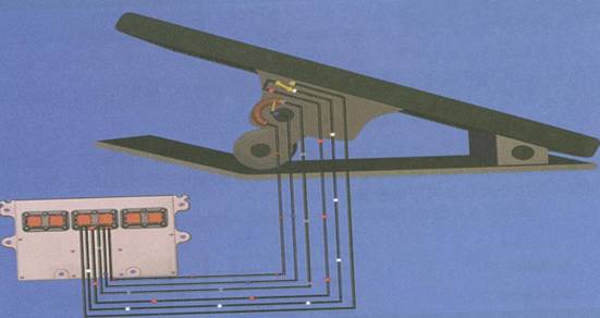 在康明斯車用和工程機械用電控發動機上,傳統的機械拉桿式油門被一個標準的6線式電子油門所取代,油門踏板和發動機之間不再有任何的機械連接,既提高了油門的響應速度和精度,也有利于整車的布置。