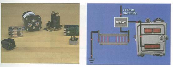 繼電器在電控系統中也被用作輸出設備,用于實現小電流對大電流的控制,或者一個電路對多個電路的控制。典型的如右圖所示的格柵加熱控制器,由于格柵加熱器的工作電流很大無法直接在ECU(M)上通過,ECU(M)通過控制一個繼電器來控制格柵加熱器的工作。ECU(M)對繼電器的控制電流最大可達到2安培。