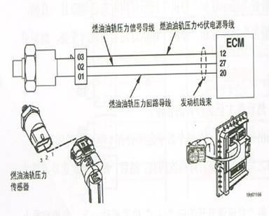 康明斯發動機上使用的壓力傳感器有兩種不同的工作原理,一種是電容式壓力傳感器,另外一種是壓電晶體式。兩種傳感器均為三線式,兩根電源線向傳感器提供5伏的工作電壓,一根信號線向ECU(M)提供壓力信號電壓。