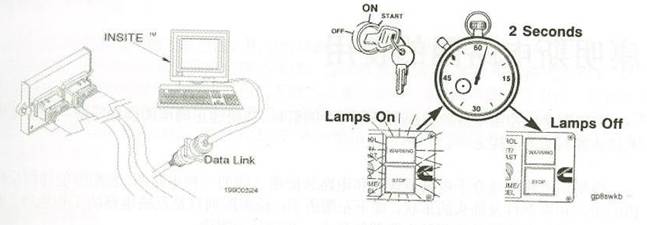 如果記錄了現行故障代碼,警告指示燈和停機指示燈均會在瞬間變亮,然后開始閃爍所記錄的故障代碼。