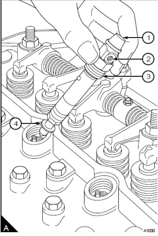 注意:拆下和廢棄座圈(A4)。如果噴油器凹處仍留有原來的座圈,當增加新座圈時,將會導致噴嘴凸起不正確。