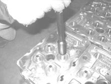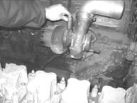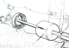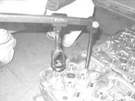 ● 維修時(shí)禁止吸煙。 ● 為避免嚴(yán)重灼傷,不要觸碰任何高溫金屬表面。 ● 關(guān)閉點(diǎn)火開(kāi)關(guān),操作規(guī)程規(guī)定的除外。 ● 發(fā)動(dòng)機(jī)須在通風(fēng)良好的區(qū)域工作。 ● 避免在發(fā)動(dòng)機(jī)工作時(shí)拆卸零部件。 ● 操作時(shí)必須戴安全防護(hù)眼鏡。 二. 發(fā)動(dòng)機(jī)專用維修工具 1. 連接板定位器(WPT001),如圖1 配套使用工具:無(wú) 用途:給連接板做定位。 操作方法:如圖2 把連接板定位器(WPT001)插入圖中箭頭所指處,進(jìn)行連接板的定位。 圖1 連接板定位器 圖2 2. 噴油器拆卸器(WPT002),如圖3 配套使用工具:轉(zhuǎn)換手柄(WPT003) 用途:拆卸噴油器。 操作方法:如圖4 把轉(zhuǎn)換手柄(WPT003)的螺紋接頭旋入噴油器拆卸器(WPT002)的螺紋孔中,然后把噴油器拆卸器(WPT002)套在噴油器上,手握轉(zhuǎn)換手柄(WPT003)向上提出噴油器。 圖3 噴油器拆卸器 圖4 3. 轉(zhuǎn)換手柄(WPT003),如圖17 配套使用工具:可配合噴油器拆卸器(WPT002)使用。 用途:可做為加長(zhǎng)手柄和慣性錘使用。 操作方法:如圖4,或18 做為加長(zhǎng)手柄的操作方法見(jiàn)圖4, 做為慣性錘使用,見(jiàn)圖18 圖17轉(zhuǎn)換手柄(WPT003) 圖18 4. 活塞安裝錐套(WPT004),如圖5 配套使用工具:無(wú) 用途:固定活塞環(huán),以安裝活塞,保護(hù)活塞不受損壞。 操作方法:如圖6 先把活塞安裝錐套(WPT004)套在活塞和活塞環(huán)上,將活塞對(duì)準(zhǔn)氣缸后輕輕向下敲擊活塞,直至裝入。 圖5活塞安裝錐套 圖6 5. 液壓挺柱安裝器(WPT005),如圖7 配套使用工具:無(wú) 用途:拆裝液壓挺柱。 操作方法:如圖7和8 手握壓挺柱安裝器(WPT005)的手柄,柴油發(fā)動(dòng)機(jī),柴油發(fā)動(dòng)機(jī)專用維修工具,柴油發(fā)動(dòng)機(jī)專用維修工具資料,柴油發(fā)動(dòng)機(jī)專用維修工具服務(wù)商,且大拇指向下按液壓挺柱安裝器(WPT005)的壓頭(圖7中圓圈所指處),然后把液壓挺柱安裝器(WPT005)的下端插入液壓挺柱中(圖8中圓圈所指處),松開(kāi)大拇指,即可開(kāi)始進(jìn)行安裝。 圖7液壓挺柱安裝器 圖8 6. 前油封安裝器(WPT006),如圖9 配套使用工具:無(wú) 用途:安裝發(fā)動(dòng)機(jī)曲軸前油封。 操作方法:如圖10 將專用工具-前油封安裝器(WPT006)套上油封,然后一起裝在曲軸前端(用擰上配套螺栓的方法進(jìn)行安裝),通過(guò)擰動(dòng)前油封安裝器(WPT006)自身的螺母,把前油封壓入安裝到位。 圖9前油封安裝器 7. 后油封安裝器(WPT007),如圖11 配套使用工具:無(wú) 用途:安裝發(fā)動(dòng)機(jī)曲軸后油封。 操作方法:如圖12 將專用工具-后油封安裝器(WPT007)套上油封,然后一起裝在曲軸后端(用擰上配套螺栓的方法進(jìn)行安裝),通過(guò)擰動(dòng)后油封安裝器(WPT007)自身的螺母,把后油封壓入安裝到位。 圖11后油封安裝器 8. 氣缸套拆卸器(WPT008),如圖13 配套使用工具:無(wú) 用途:把缸套拔出汽缸。 操作方法:如圖14 取出汽缸兩側(cè)的M16*2.0的兩根螺桿,換上氣缸套拆卸器(WPT008)配套的兩根帶銷孔的光桿,并旋入被取出的兩根螺桿的位置。然后把氣缸套拆卸器(WPT008)的支架架在兩根帶銷孔的光桿上,把拔頭在另一端套在缸套上,在兩根帶銷孔的光桿上插上銷釘。最后通過(guò)擰動(dòng)氣缸套拆卸器(WPT008)上的螺母的方式,拔出缸套。 圖13氣缸套拆卸器 9. 氣缸套安裝器(WPT009) ,如圖21 配套使用工具:無(wú) 用途:把缸套壓入汽缸。 操作方法:如圖22 換上氣缸套安裝器(WPT009)配套的兩根帶銷孔的光桿(同氣缸套拆卸器配套的兩根光桿),并旋入汽缸側(cè)的兩個(gè)M16*2.0螺孔中。然后把氣缸套安裝器(WPT009)的壓頭壓在缸套上,并把氣缸套安裝器(WPT009)的主體支架架在兩根帶銷孔的光桿上插上銷釘。最后用手柄搖動(dòng)液壓千斤頂,把缸套壓入汽缸。 注意:當(dāng)液壓千斤頂行程不夠時(shí),可用手下壓液壓千斤頂把其行程重新歸零,同時(shí)把銷孔光桿上的銷釘下移,這樣可以彌補(bǔ)液壓千斤頂?shù)男谐滩粔颍瑫r(shí)又能繼續(xù)下壓缸套到合理的位置。 圖21氣缸套安裝器 10. 氣門油封安裝器(WPT010),如圖15 配套使用工具:無(wú) 用途:安裝發(fā)動(dòng)機(jī)氣門油封。 操作方法:如圖16 利用氣門油封安裝器(WPT010)在氣門導(dǎo)管上安裝氣門油封(此安裝工具的導(dǎo)桿為可拆卸式)。 注意:安裝不當(dāng)會(huì)引起泄漏,氣門油封不能重復(fù)使用。 圖15氣門油封安裝器 圖16 11. 氣門彈簧壓縮器(WPT011),如圖19 配套使用工具:無(wú) 用途:壓氣門彈簧,安裝氣門鎖夾。 操作方法:如圖20 把氣門彈簧壓縮器(WPT011)螺紋連接端旋入圖中箭頭所指處,然后把氣門彈簧壓縮器(WPT011)的壓頭壓在氣門彈簧上,手握住手柄,并下壓,直到手柄桿為水平狀態(tài),此時(shí)方可安裝氣門鎖夾。 圖19氣門彈簧壓縮器(WPT011) 圖20 12. 渦輪增壓機(jī)油接口拆裝器(WPT012),如圖23 配套使用工具:1/2″棘輪扳手 用途:拆裝渦輪增壓機(jī)油接口的螺栓。 操作方法:如圖24 把工具(WPT012)套在渦輪增壓機(jī)油接口螺栓上,配合使用工具1/2″棘輪扳手,進(jìn)行拆裝。 圖23渦輪增壓機(jī)油接口拆裝器 圖24 13. 銅錘(WPT013),如圖25 配套使用工具:無(wú) 用途:敲擊鈑金件和敲擊不希望被敲擊變形、凹陷、破裂的部件。。 操作方法: 握住銅錘(WPT013)的手柄,用錘頭敲擊希望被敲擊的部件或部位。 圖25銅錘(WPT013) 14. 卡簧鉗(WP