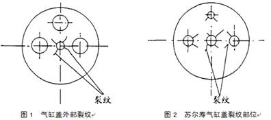 Sool tho RD and RND-type diesel engine cylinder cover, cracks occur mostly small cylinder heads on the underside of the central hole, activated valve, safety valve of injector hole holes around the corner, along the radial extension (as shown in Figure 2) [1].
