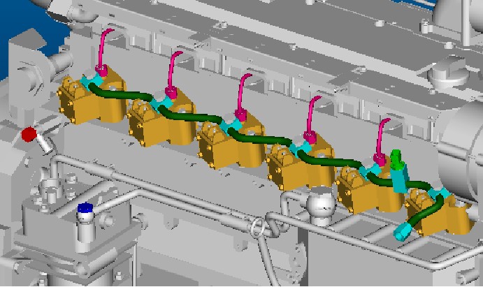 從柴油箱到金屬燃油管接頭這段油路中的油壓是由燃油輸油泵建立的,而輸油泵在發(fā)動機額定轉(zhuǎn)速下的出油壓力一般為5bar左右,故這段油路稱為低壓油路,只用以向單體泵供給濾清的燃油。從單體泵到噴油器這段油路中的油壓是由單體泵建立的,為1600bar左右。