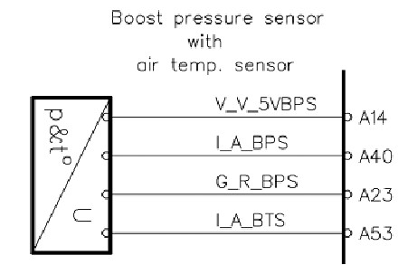 針腳:A14(正),A40(進(jìn)氣壓力信號(hào)),A23(負(fù)),A53(進(jìn)氣溫度信號(hào))