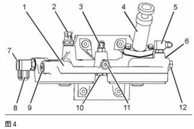 7. 冉莊燃油充注泵 (4) 至燃油濾清器底座總成(1). 參考拆解和組裝,“燃油充注泵-拆卸和安裝”。